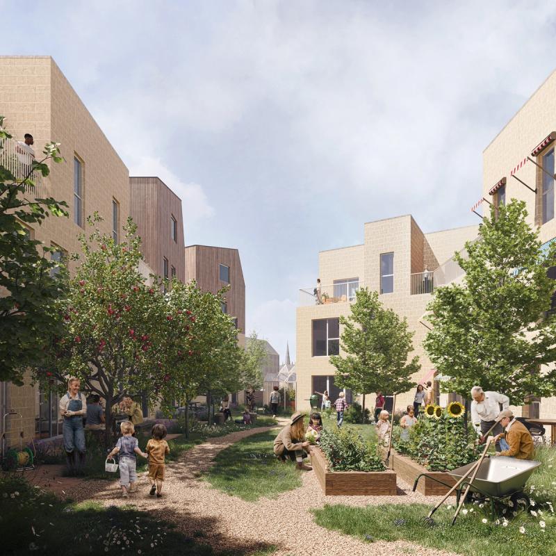 Their masterplan creates a sustainable, multi-generational live/work scheme in Saxonvale, developed as an alternative to a locally contentious developer-led proposal for a more commercial scheme.