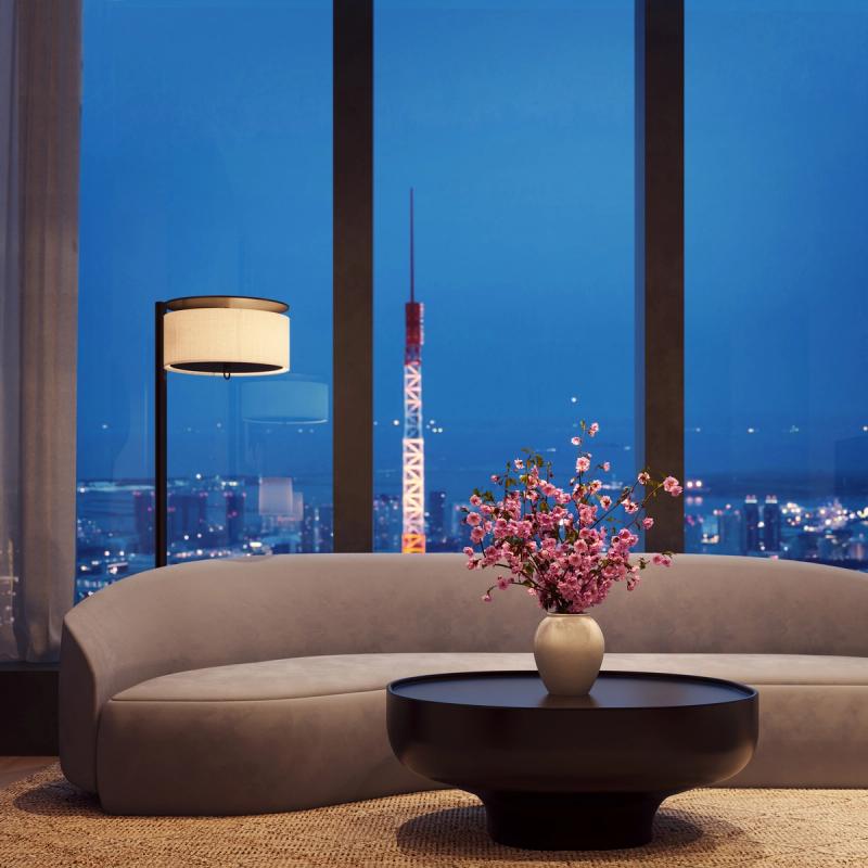 Located in the Toranomon Hills, Aman’s first standalone branded residences occupy the top 11 floors of the magnificent Mori Tower, Japan’s tallest residential building, and overlook the iconic Tokyo Tower. The development sits in Azabudai Hills, a new 8-hectare garden district focused on green, community living.