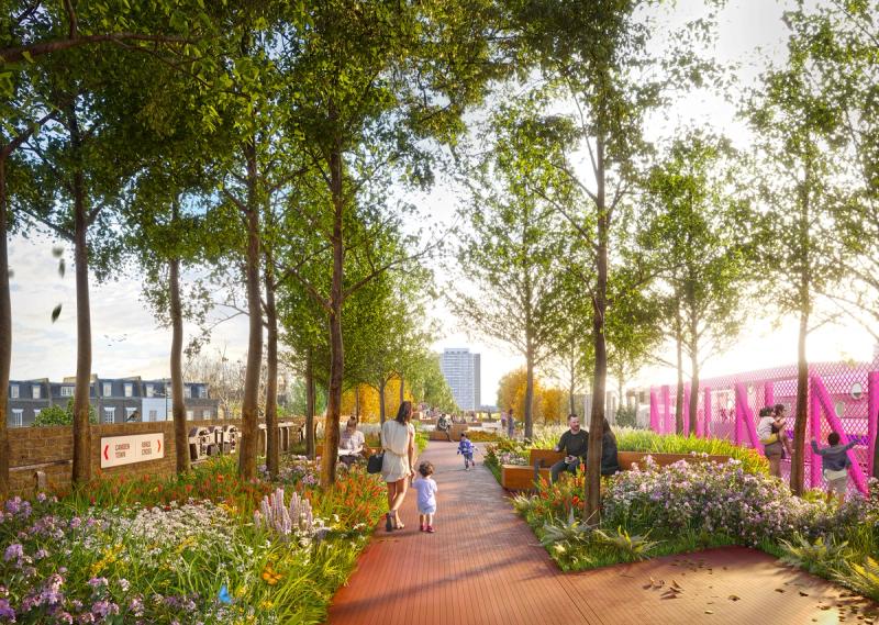 Inspired by New York’s iconic Highline, the Camden Highline will turn a disused stretch of railway viaduct into a new elevated park and walking route to create a rich new community asset. The route for the Highline is 1.2km long, around 8 metres above ground and will create local green space for use by around 20,000 people with seating areas, cafés, public art and charitable activities.
