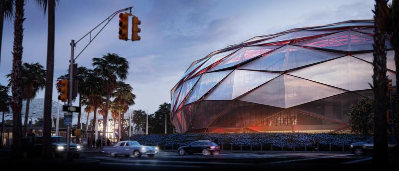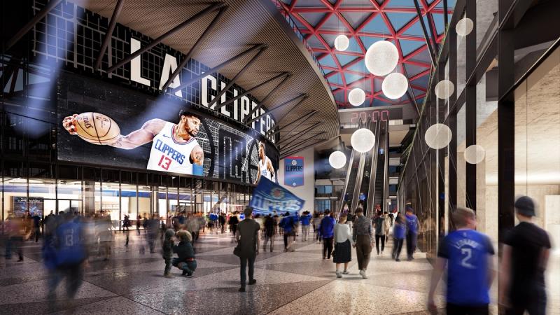 We collaborated with the LA Clippers media team to produce a promo video for the big launch reveal in July 2019, designed to engage fans by showing the stadium on game night. Three years later we completed new marketing images to reflect the final designs, landscaping and public realm. Additional images supported the development of the brand through sponsorship opportunities to show how the building might look bearing the name of potential sponsors. A subsequent 23-year naming rights deal was announced with software giants Intuit.